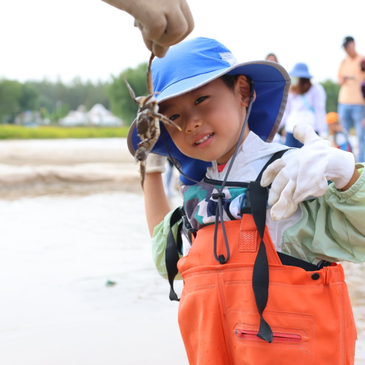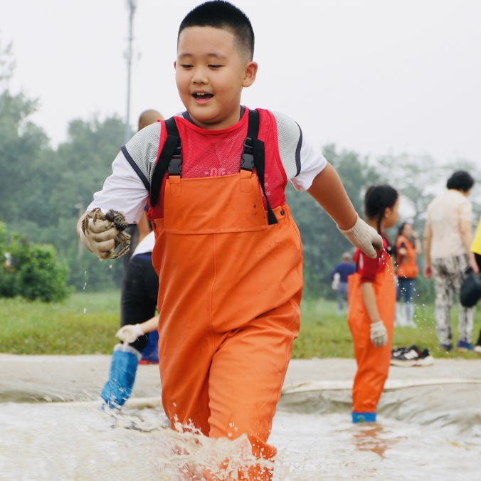 节。穿上橘黄色下水服,就是秋日田野里最靓的仔。捉螃蟹也有技巧哦,眼睛盯紧水面,稍有波动,双手一扑,即可捉