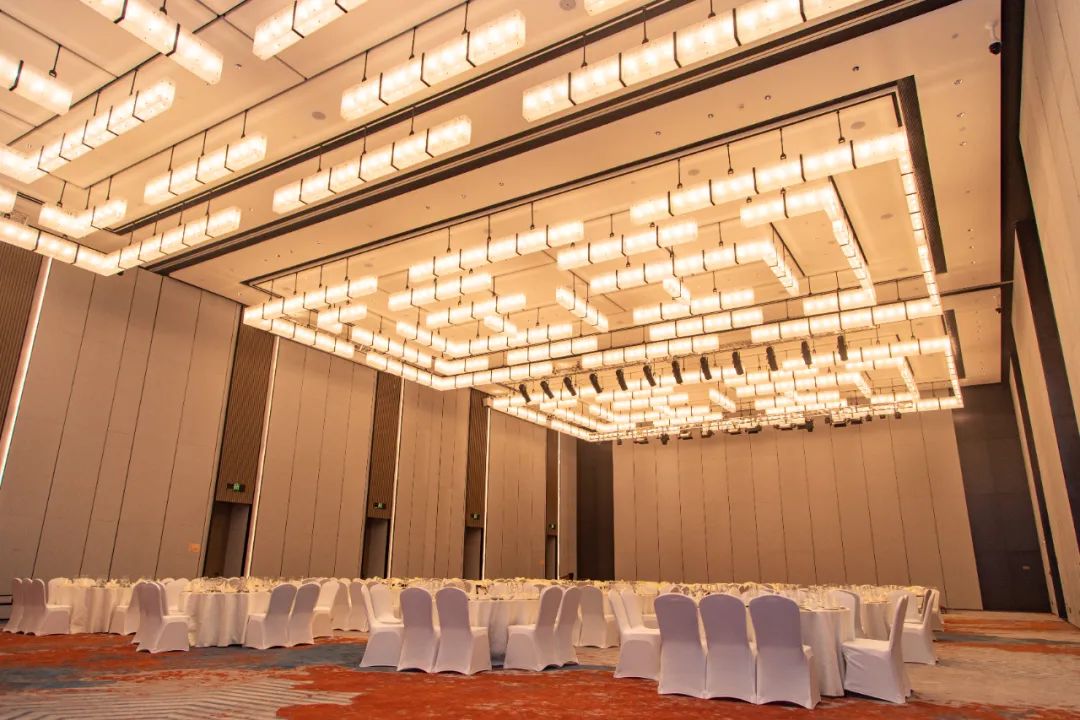 一踏入酒店大堂,极具设计感的雕塑、中国风的背景装饰及锦华酒店前台工作人员的亲切笑脸,瞬间让人感受到宾至如归的温暖。作为万达旗下酒店,锦华酒店定位高端商务酒店,配备202间(套)精致典雅客房,美华酒店则更注重经济实惠,配备了163间(套)清新舒适的客房。除此之外,餐饮与休闲娱乐、会议及宴会等设施一应俱全,全方位满足不同顾客的需求。一层大堂酒廊,全天候提供香醇咖啡、浓郁红茶以及美味点心,夜晚更有各式精致鸡尾酒和小食可供挑选。在五楼餐厅,早中晚三餐均供应中西各式佳肴,自助挑选,尽享美味。另外,小编了解到,酒店还提供定制服务,可根据顾客需求另备饮食。六层健身中心配备健身器械、瑜伽室,面向酒店顾客24小时开放。值得一提的是,锦华酒店内配备1个面积达740平方米的无柱大宴会厅、5个面积从50平方米至247平方米不等的多功能会议厅,为东坝居民婚丧嫁娶、企业商务活动提供更多选择。宴会厅设计大气简约,最多可容纳450名宾客参加庆典,也可分隔为三个小宴会厅,灵活满足不同规格需求。