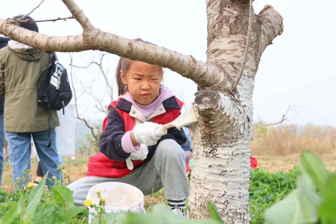 涂白可是一项技术活呦,涂料配置、树干基部清理、常见病虫害防治、涂白高度测量、涂白厚度掌控......看似简单的一项工作,实则大有学问。让我们跟着老师学习植物过冬的秘密,揭开它们迷人的生存智慧吧!
