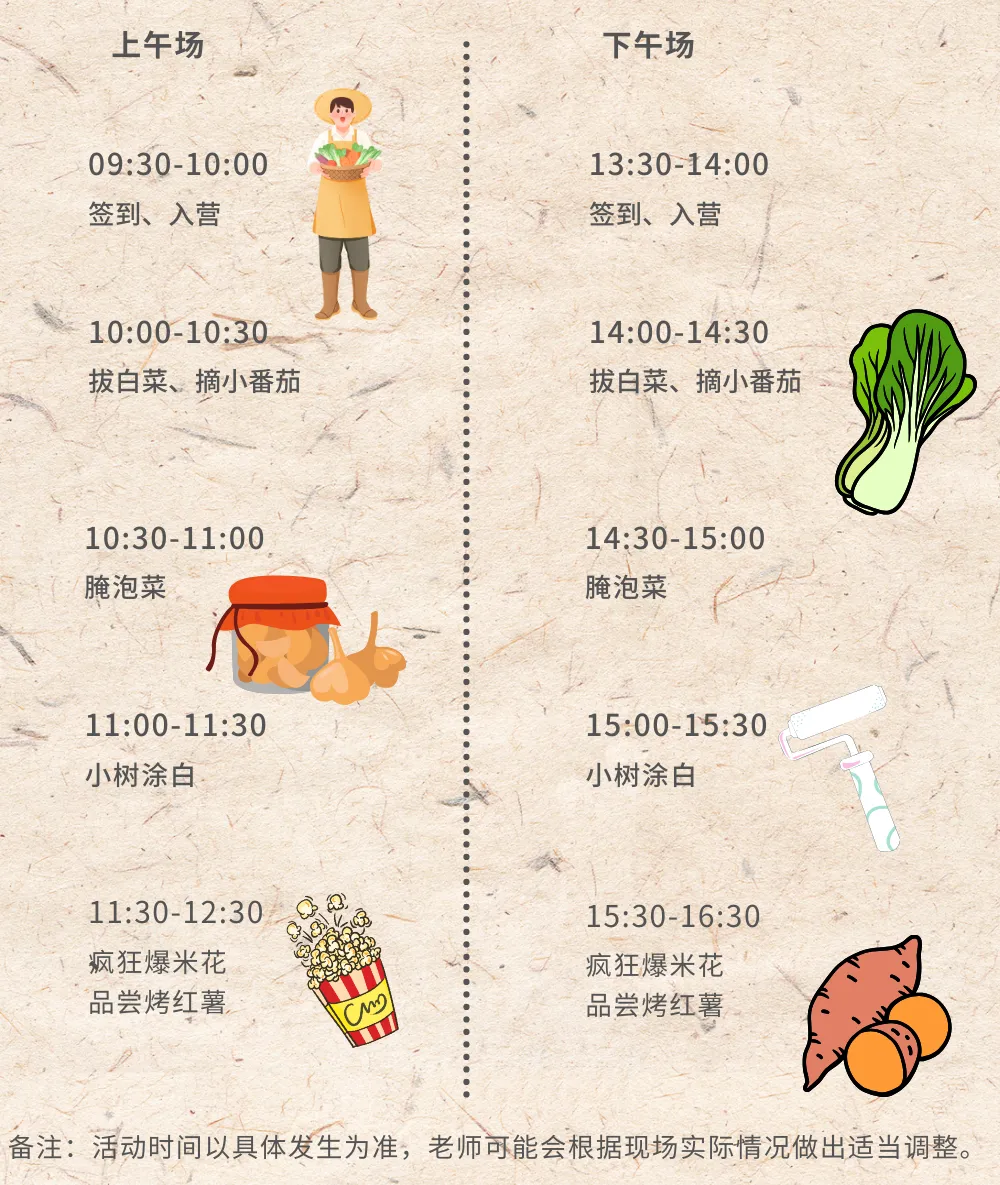 费用包含:导师费用、场地费用、活动物料、保险、活动组织、大白菜1颗、小番茄1份、自制泡菜1份,劳动实践证书。