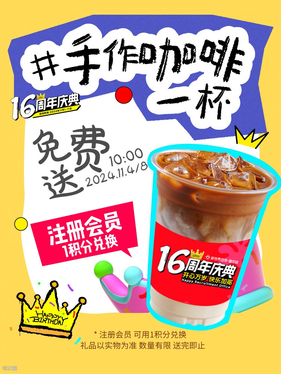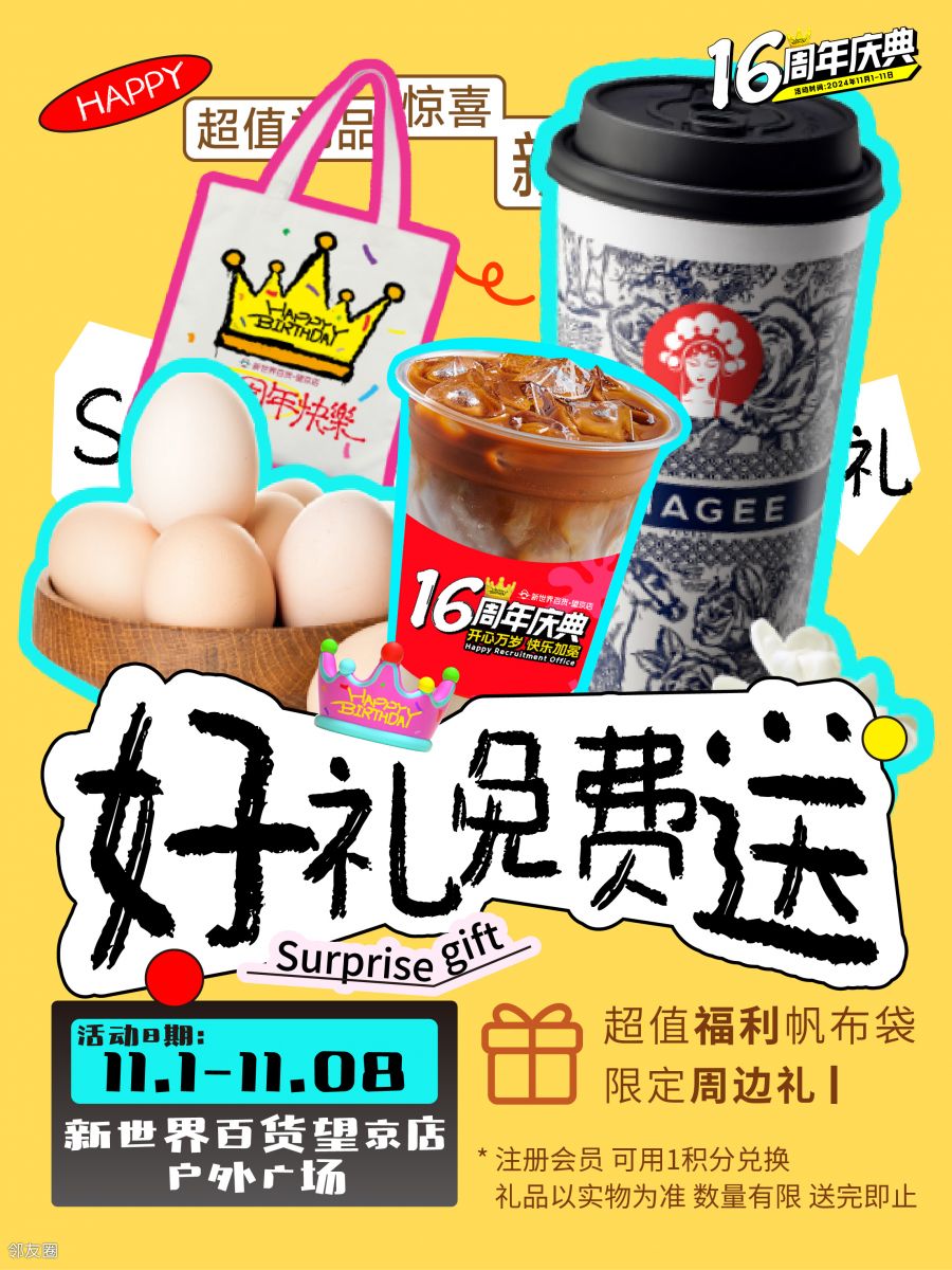 wow!!新世界百货望京店16周年庆霸王茶姬奶茶、IP购物袋、咖啡、鸡蛋免费送来啦!!!