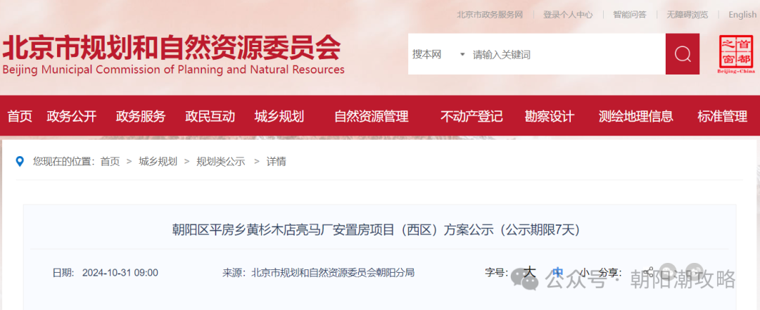 朝阳区平房乡黄杉木店亮马厂安置房项目(西区)方案公示