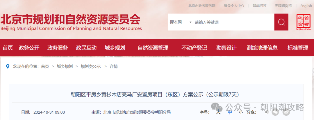 朝阳区平房乡黄杉木店亮马厂安置房项目(东区)方案公示
