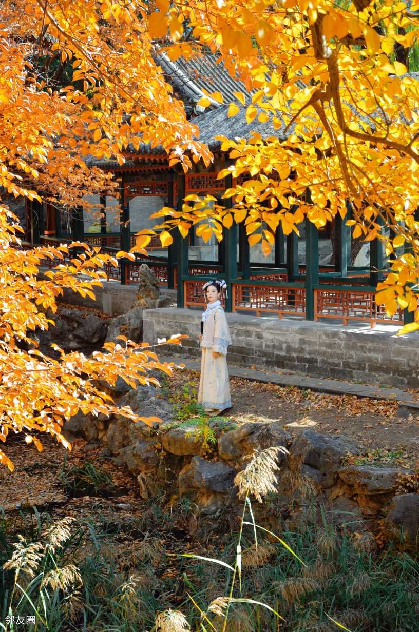 谐趣园的午后阳光很好,拍金色秋叶。另外,带着你的模特去画中游,很惊艳的