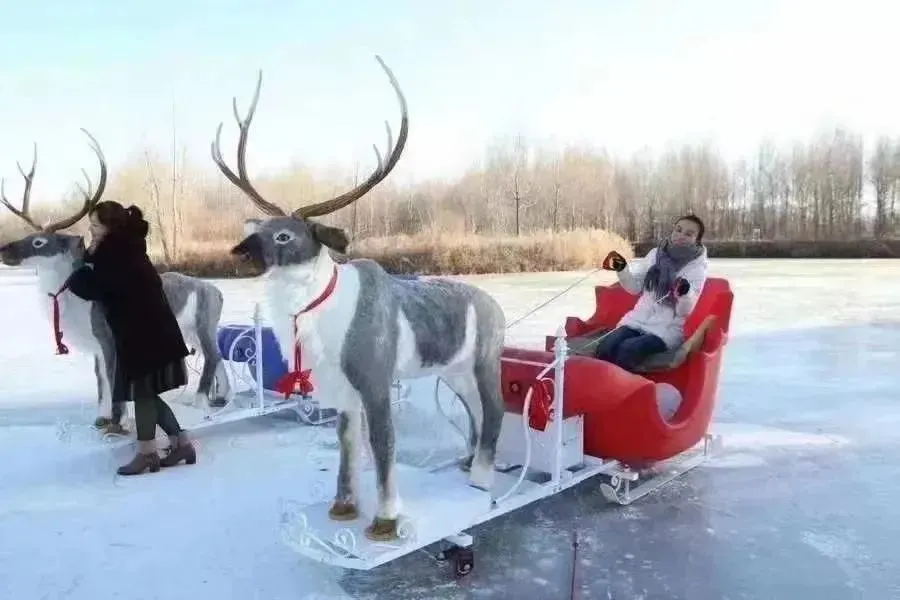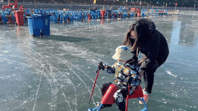 【丰富项目】30000㎡宽阔水面天然形成的真冰冰场,冰场包含冰车、狗拉爬犁、冰上飞速卡丁车、冰上陀螺、冰上自行车等项目,都是萌娃的心中所好,刺激又好玩。