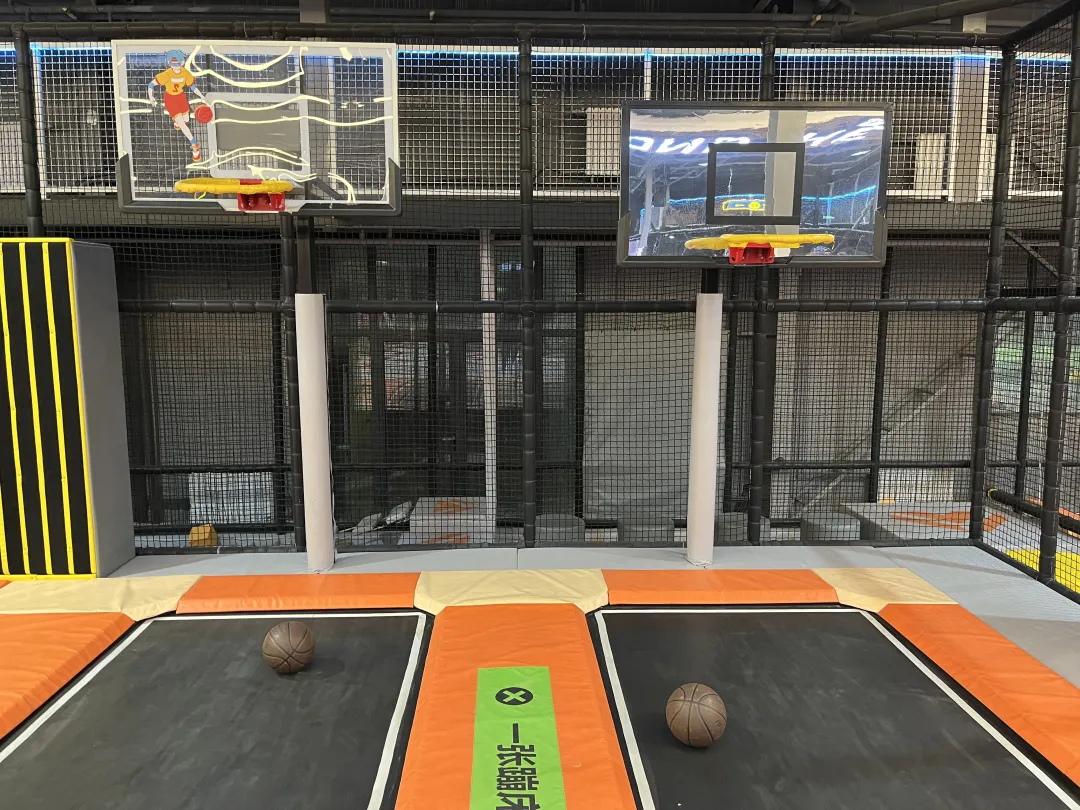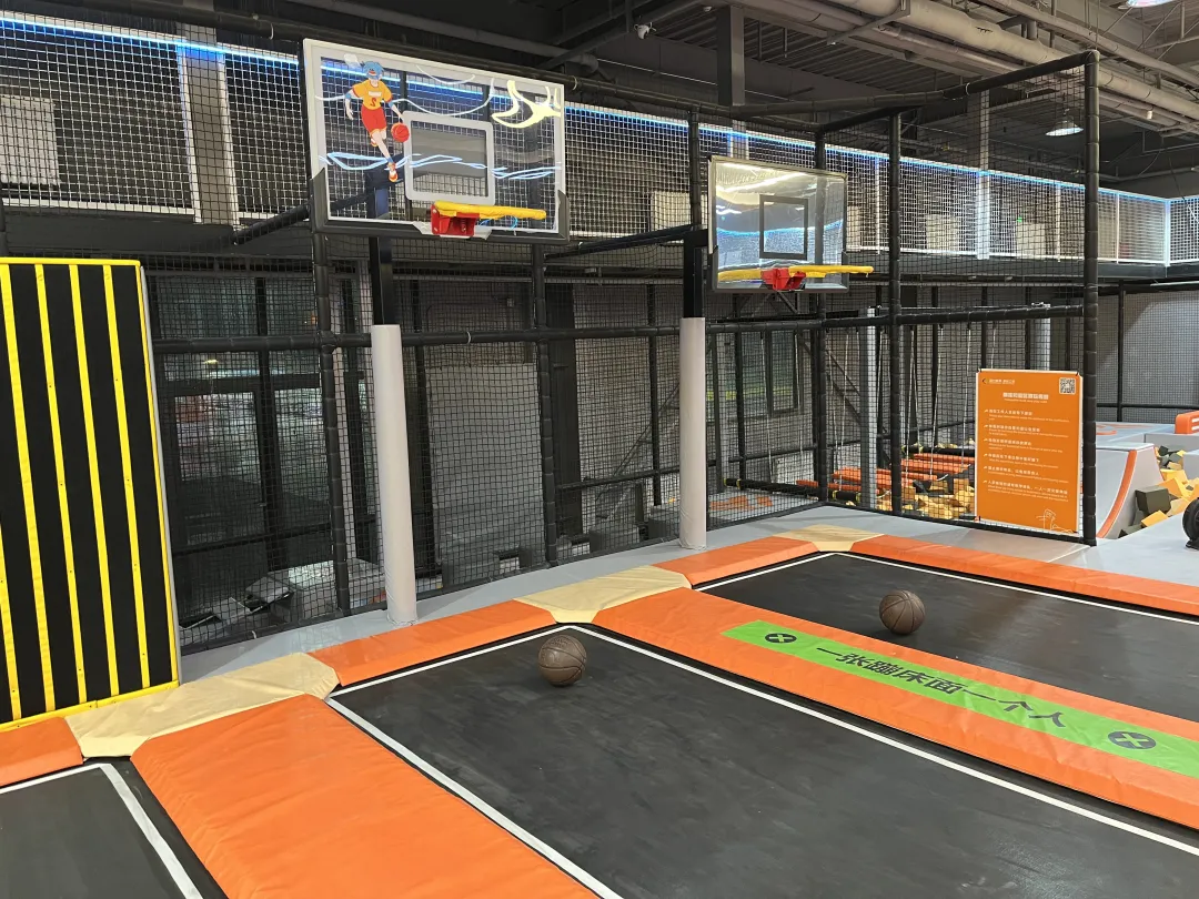 飞跃梦想,一扣成名! 在蹦床灌篮区,你可以实现你的篮球梦。