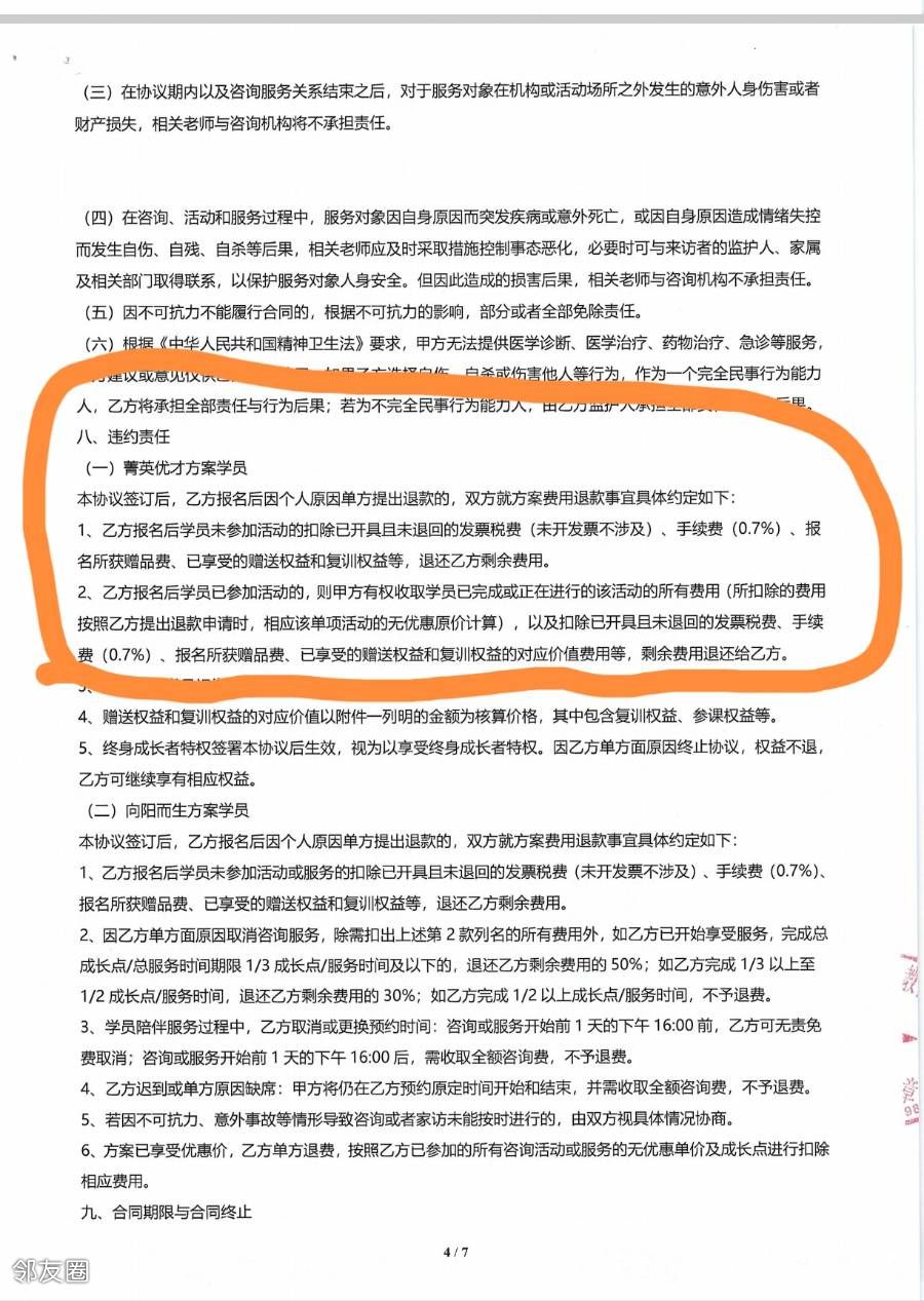 签订的合同明确写着,学员未参加活动,除了发票税费、手续费和报名时赠送的礼品费,可以退还剩余费用。但认知初拒不退费!