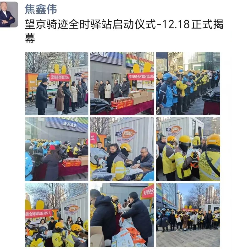 12月18日上午,位于新荟城商圈东侧的望京骑迹全时驿站正式启动!街道工委副书记、办事处主任刘丹,街道工委副书记赵轶炜,美团党办王慧,新荟城项目董事谭诚,相关科室负责人以及50余名骑手共同参加启动仪式。