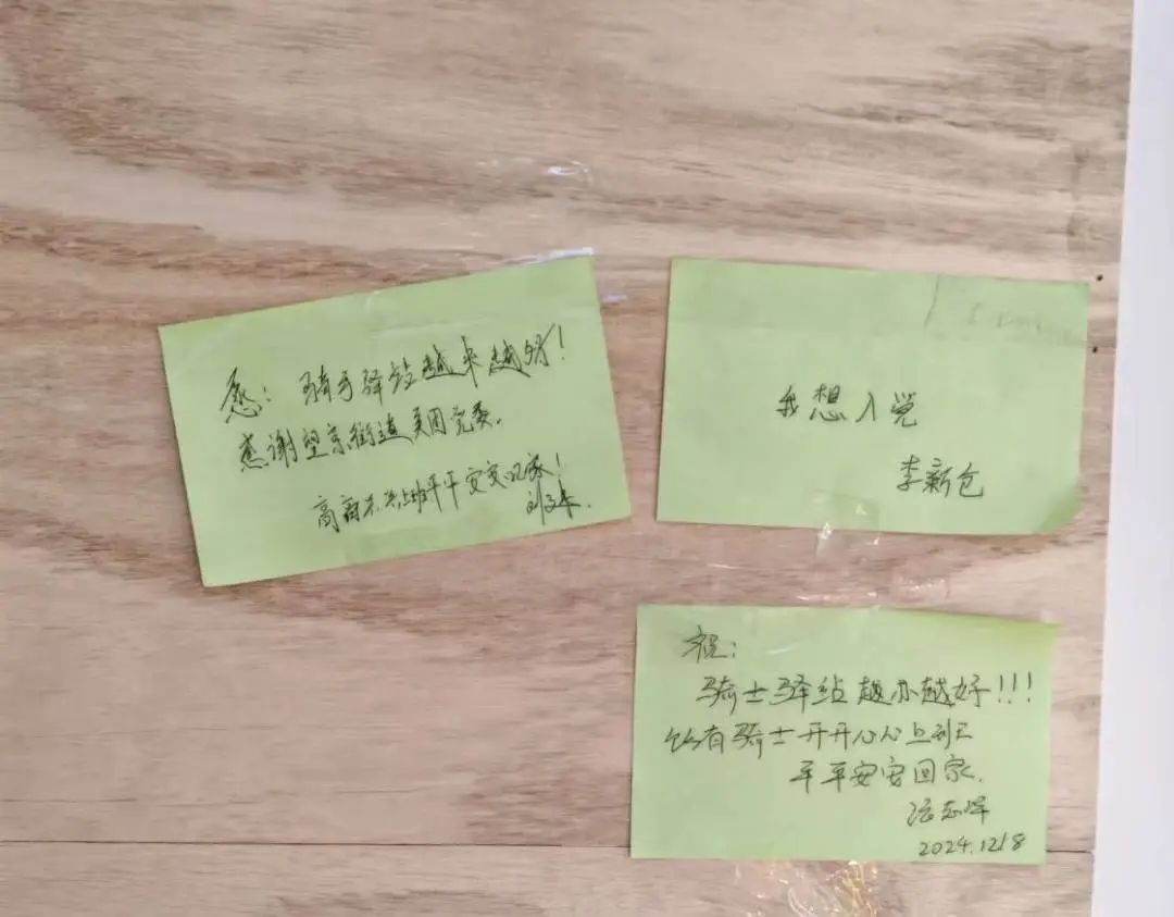 “新荟城驿站距离望京SOHO、麒麟社都非常近。为了能尽可能多接单,平时我们都是坐在电动车或台阶上等单,天气渐渐冷了,找个暖和的地方等单、送餐间隙休息一下,是我们的迫切需求,驿站很好地满足了大家希望等单时离商家较近,还能喝口水的愿望。在这里取水、充电都非常方便。”乐跑骑士长李新仓说道。