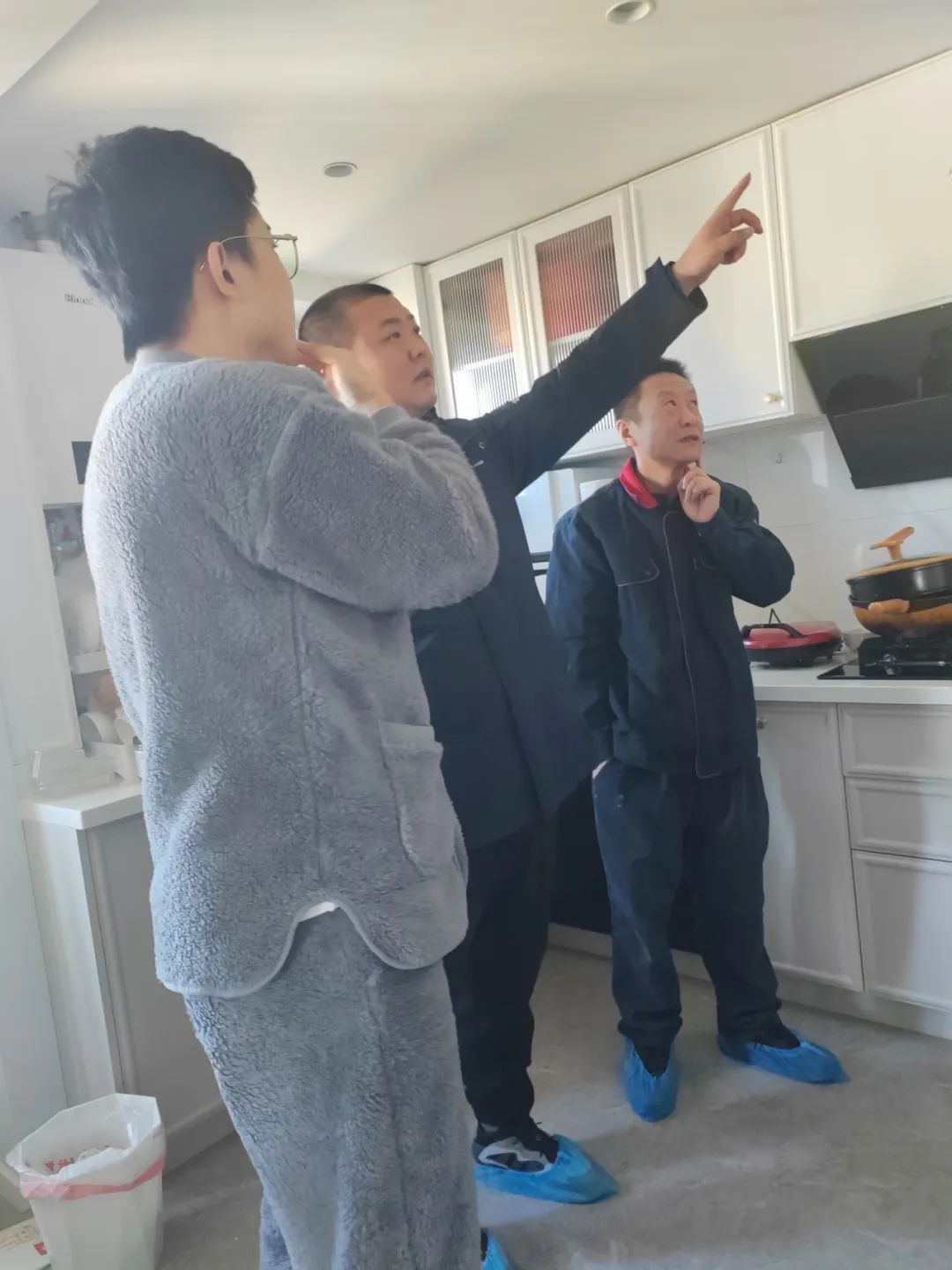 经过1个多月的沟通与协调,漏水点位20层住户对于热力公司给出的维修方案细节仍不认可。社工小刘在此基础上,多次与该住户进行电话沟通,帮助其分析热力公司给出的维修方案。经过社工小刘和民警耐心细致地与该住户沟通,协同物业和热力公司多次入户,终于用真诚打动了住户,同意热力公司入户维修。随后,社工小刘放弃周末的休息时间,一大早就同物业和热力工作人员一起来到20层住户家中,就管道维修及拆除恢复的细节进行再次确认。最终在几方的共同努力下,热力公司成功对漏水点进行了维修。