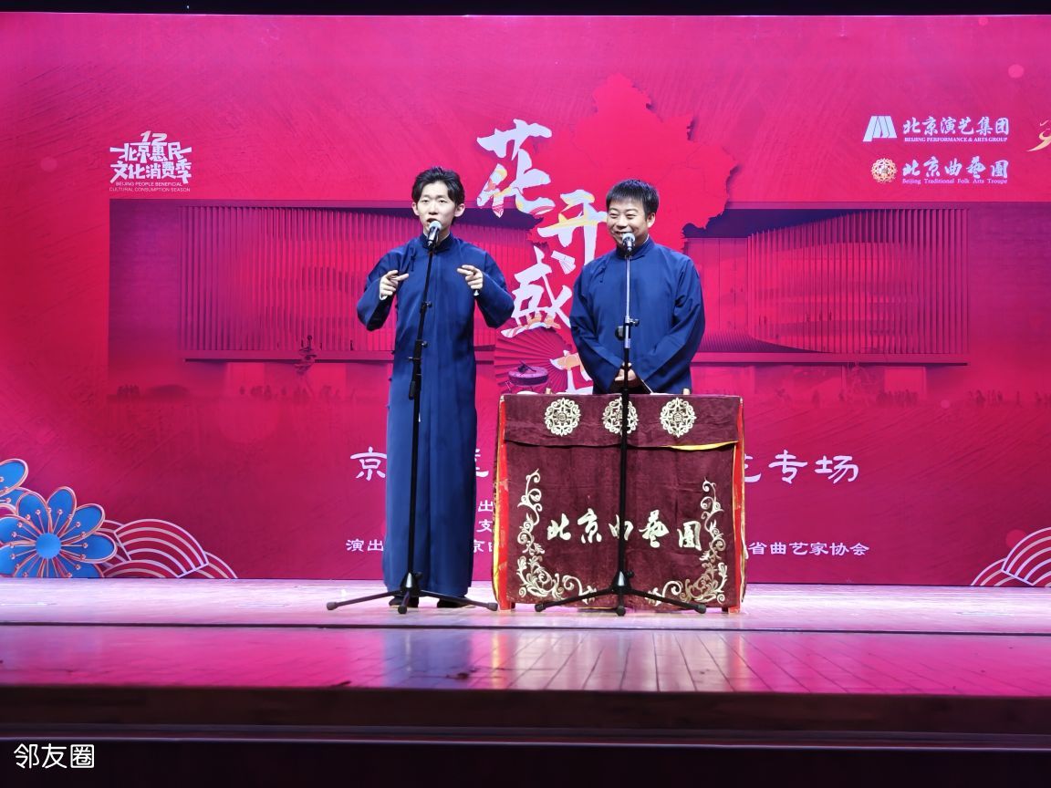 12月29日晚上,在大兴区大兴剧院举办了一场名为“花开盛世”京津冀迎新年曲艺专场演出,共有7组相声演员进行表演,著名演员李菁、贾旭明作为本场的主力,最后登场表演,演出结束后全体演员集体谢幕,由此拉开了2025年新年序幕,让我们共同期待新的一年到来吧!