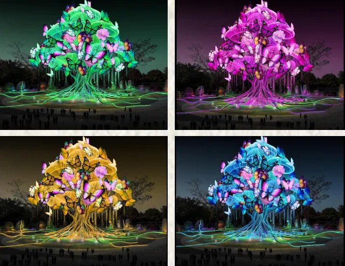 截止至今年,已连续举办两届北京世园花灯艺术节,采用“非遗传统彩灯工艺”与“现代科技光影互动”融合的方式闪耀世园。