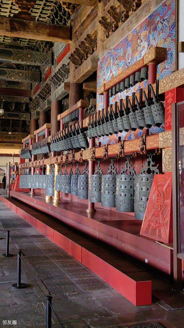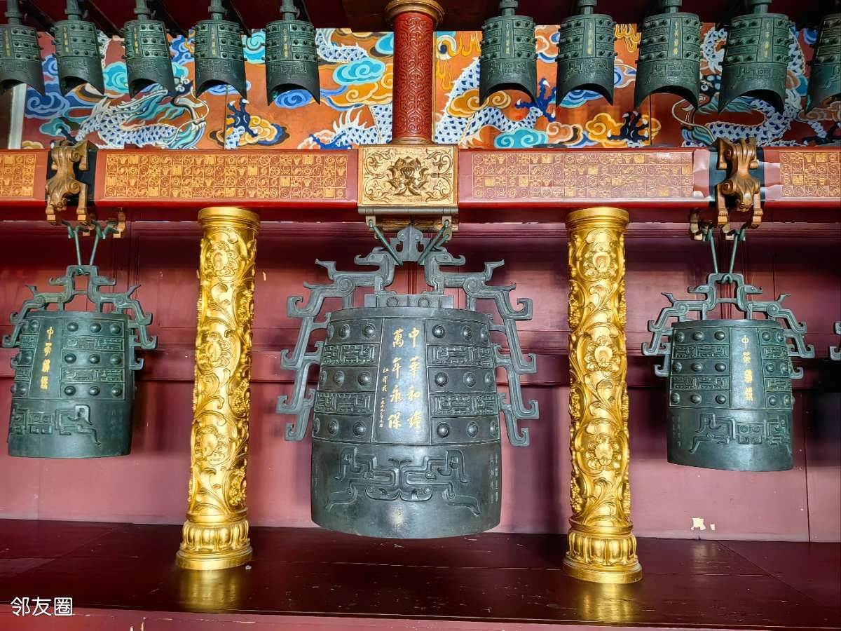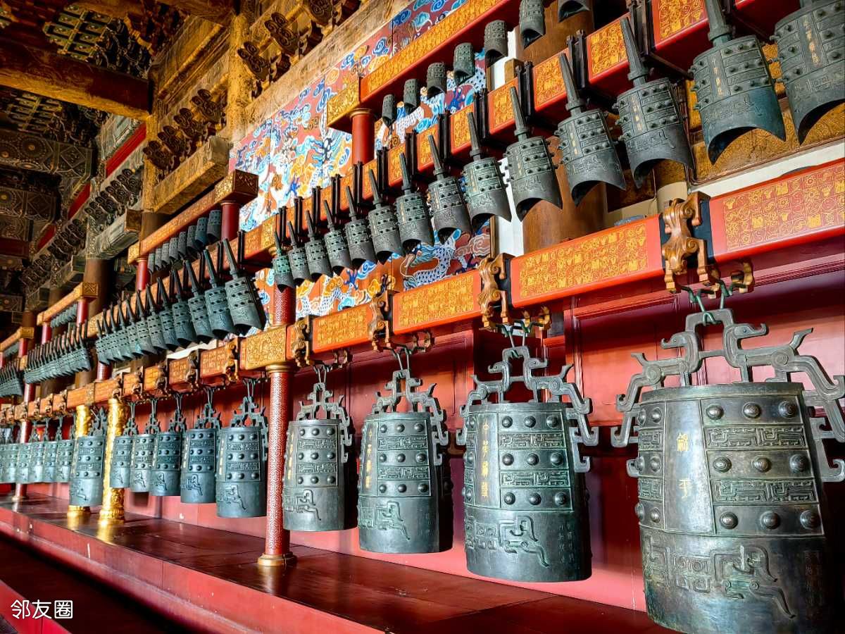 中华和钟是为了迎接新千年的到来,以2400年前的曾侯乙编钟为原型进行设计,1999年11月制作完成的青铜编钟,安放在享殿正中,成为太庙馆藏文物,由zx于2000年1月1日上午首先鸣响。