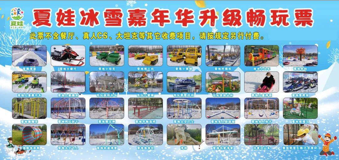 单人畅玩票:雪圈滑道+电动项目+电玩项目+雪地无动力30项多项不限时畅玩