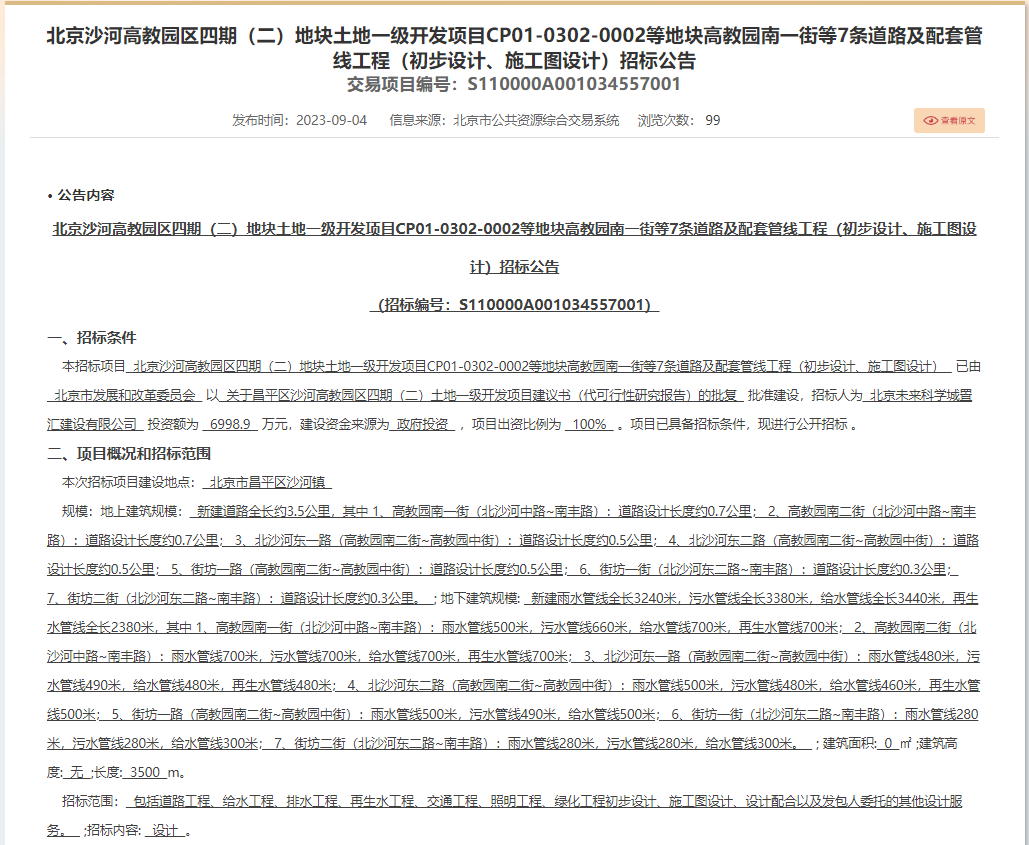 项目名称:昌平区沙河高教园区四期(二)地块土地一级开发项目CP01-0302-0002等地块配套市政交通工程