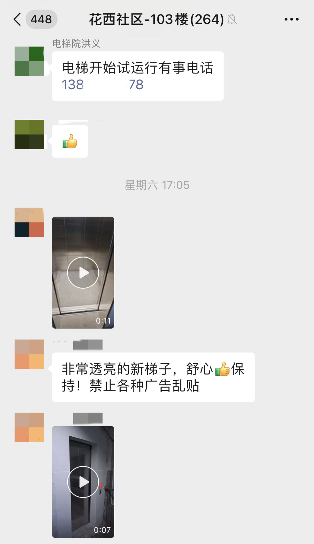 了解电梯故障原因后,社区工作人员在网上找来相关科普视频,发到了居民群里,解答居民担忧的电梯质量及电梯安全问题。