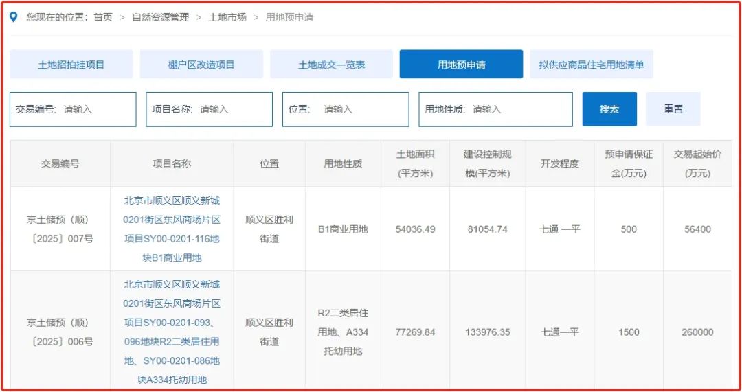 “东风商场片区拆分之后再次进入预申请程序!”东风商场片区SY00-0201-116地块B1商业用地,以及SY00-0201-093、096地块R2二类居住用地、SY00-0201-086地块A334托幼用地再次进入预申请程序。该片区土地总面积约197亩,交易起始总价近32亿元。其《交通规划综合方案》中披露,上述地块紧邻的M15号线顺义站将预留与规划R4线换乘条件。
