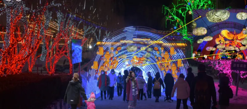 其中冰灯展区占地8000平方米。
