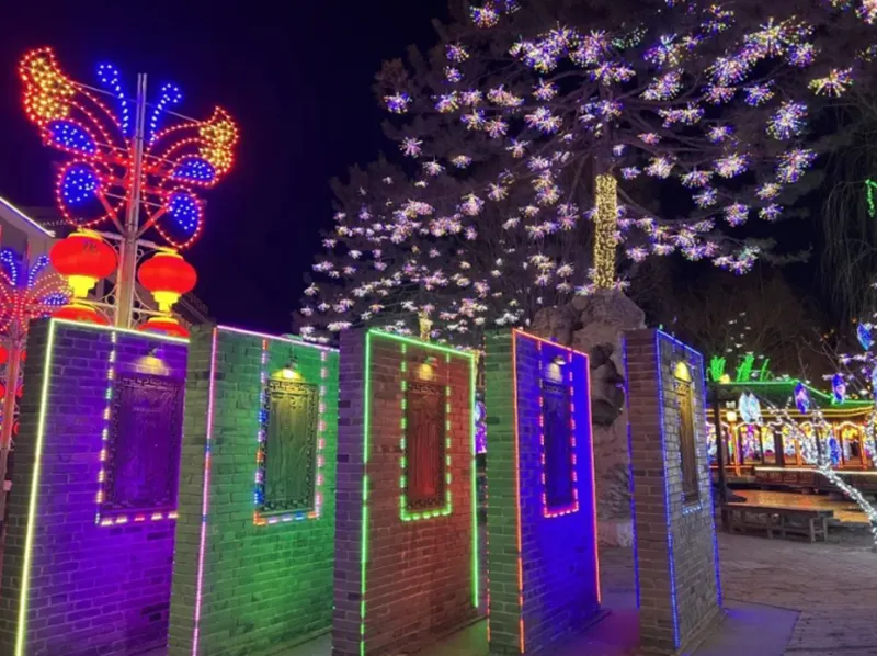 及万盏山体长城及亭台楼阁轮廓灯、装饰照明灯。