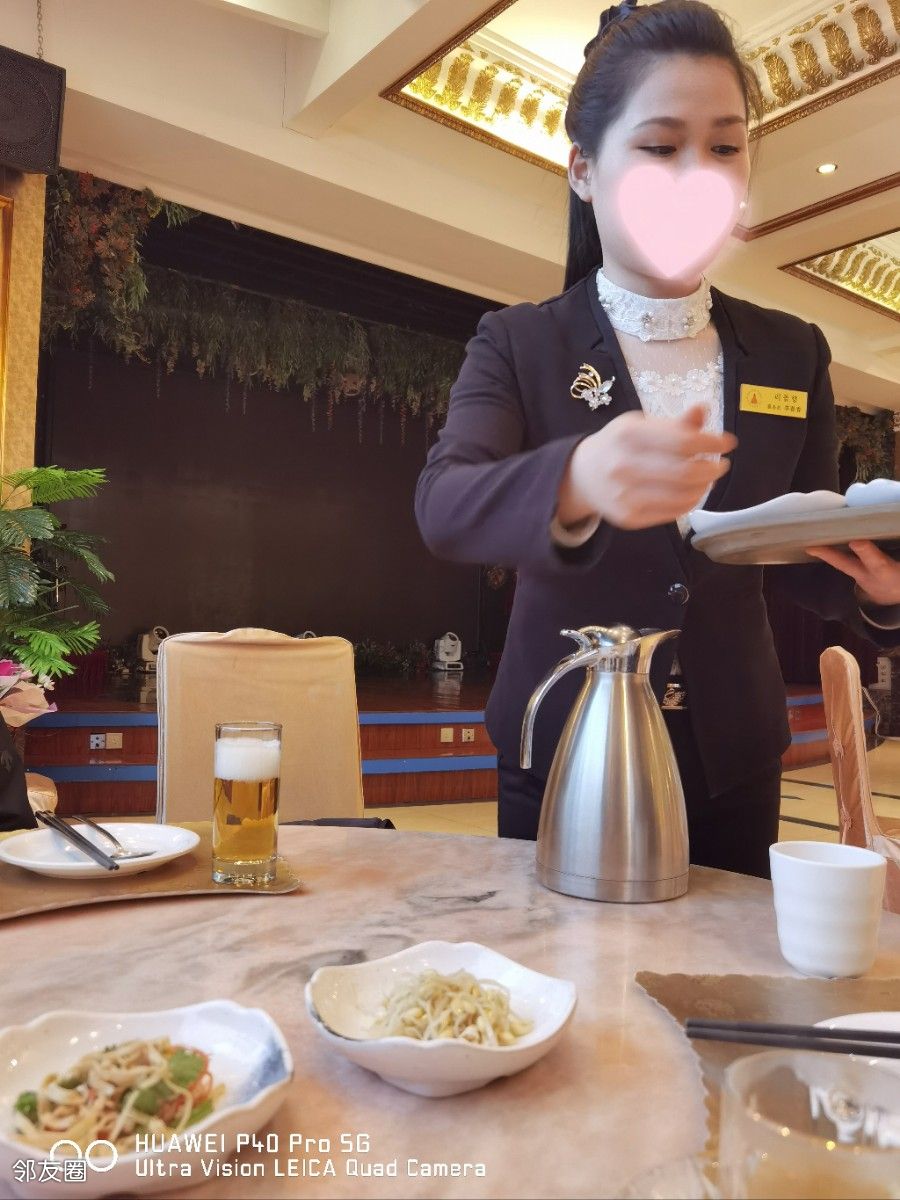 美女服务员很漂亮,身材也很好,端正大方,温文尔雅,真正的朝鲜美女。