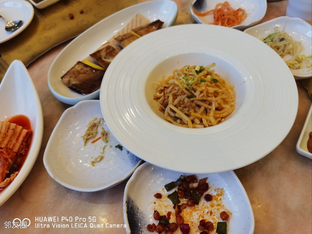有烤肉、炒年糕、烤鲅鱼、鸡汁笋丝、大酱汤、石锅拌饭、朝鲜冷面和各式小凉菜。