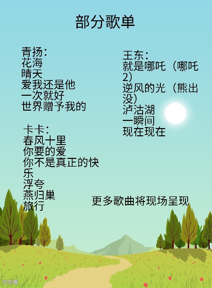 参演歌手:王东、卡卡、青扬、吴嘉锐
