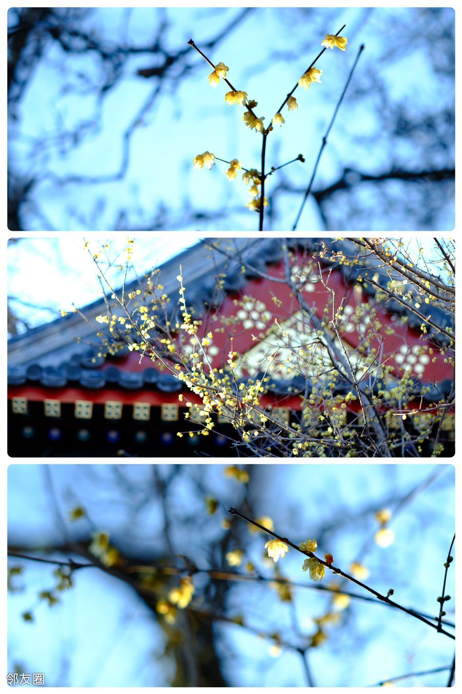 ▫️盛放腊梅与含苞玉兰 - 在祝延万寿的殿前,腊梅正在绽放,在阳光下晶莹剔透,这也昭示着北京的春天即将来到;