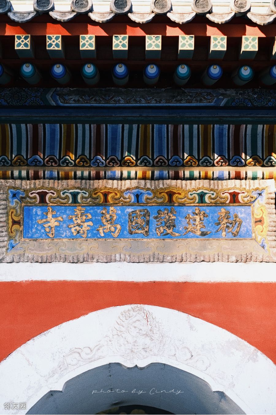 到万寿门入口山门顶上的「万蝠图」