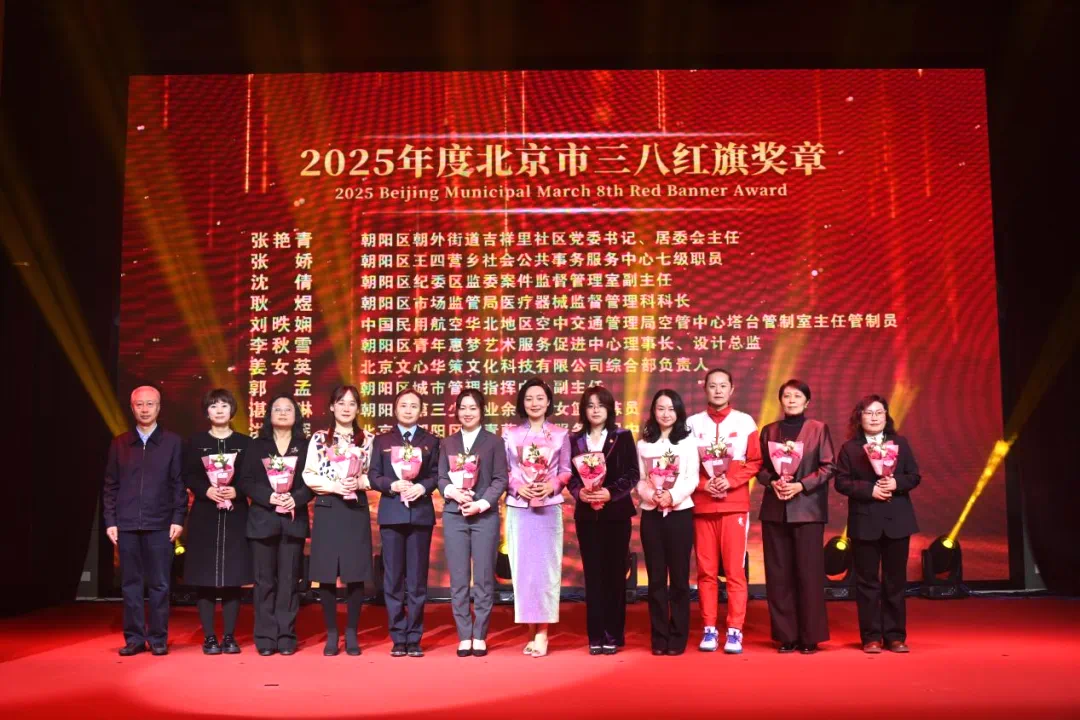 3月3日上午,“WOMEN·在朝阳”朝阳区2025年纪念“三八”国际妇女节主题活动成功举办,并表彰了2024年度全国三八红旗集体、2025年度北京市三八红旗奖章和2025年度北京市三八红旗集体等先进典型。其中,望京街道花家地北里社区居民委员会荣获2024年度“全国三八红旗集体”称号,北京市朝阳区青年惠梦艺术服务促进中心理事长、望京育梦朝阳儿童成长友好环境空间负责人李秋雪荣获2025年度“北京市三八红旗奖章”。