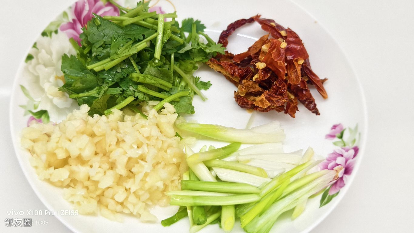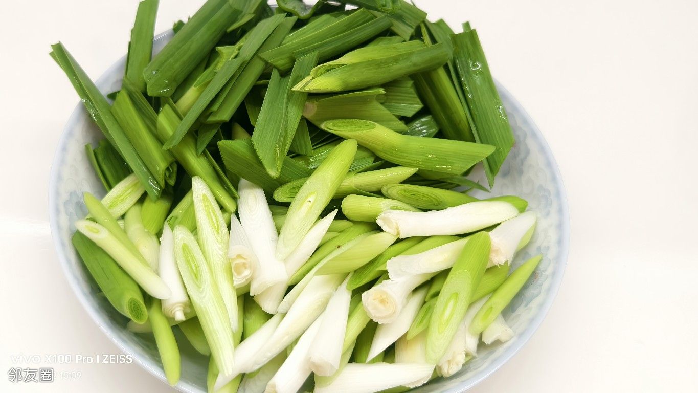 多清洗几遍去掉淀粉,水开焯半分钟,变色后马上捞出过凉水四五遍,然后控干水分备用。