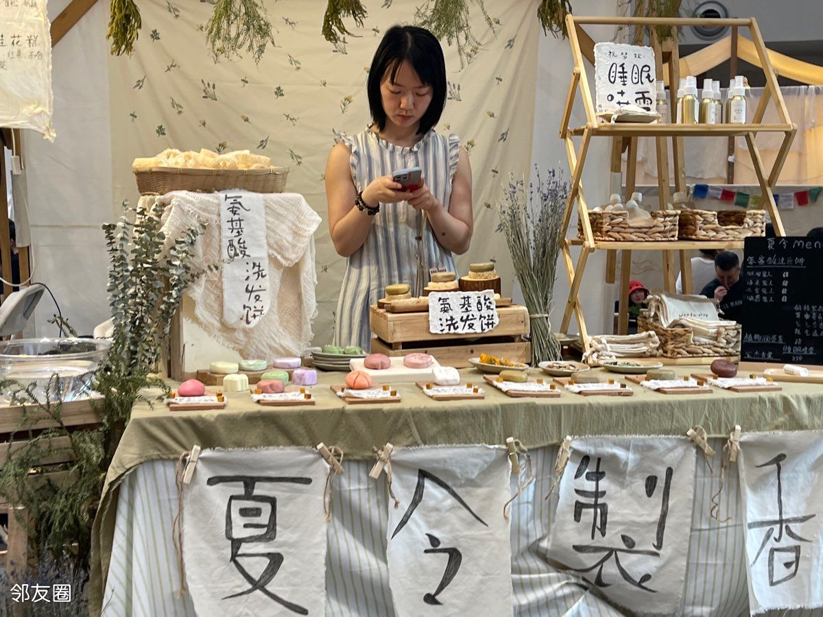 除了丰富多样的手作商品,市集还设有现场制作课程,让你亲身体验手作的乐趣。你可以跟着老师学习制作香水柠檬,感受清新的香气在手中绽放;也可以参加阿毛的食花秘发现场制作课程,探索食物与花朵的奇妙结合。