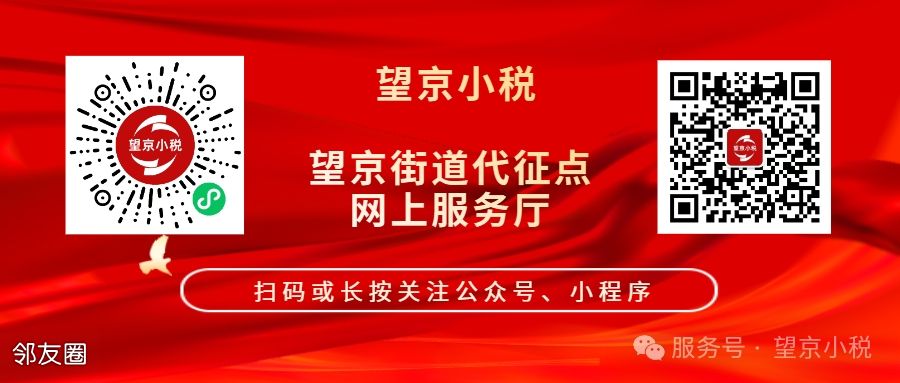 您可以通过关注望京街道官方公众号“望京新语”点击右下方“望京小税”进入代征点网上服务厅。也可以关注“望京小税”微信公众号,获取更多的相关信息和最新通知。