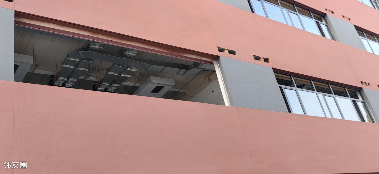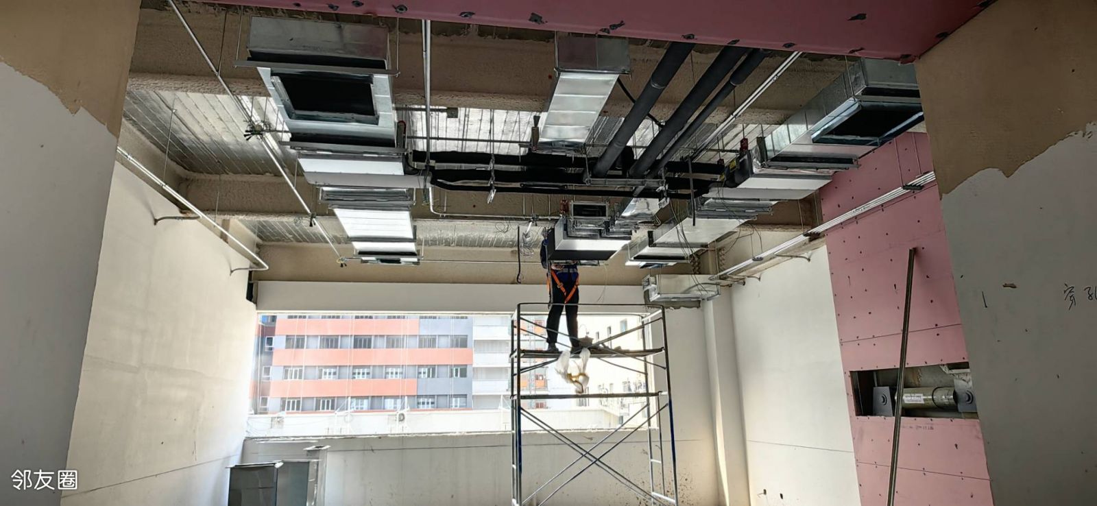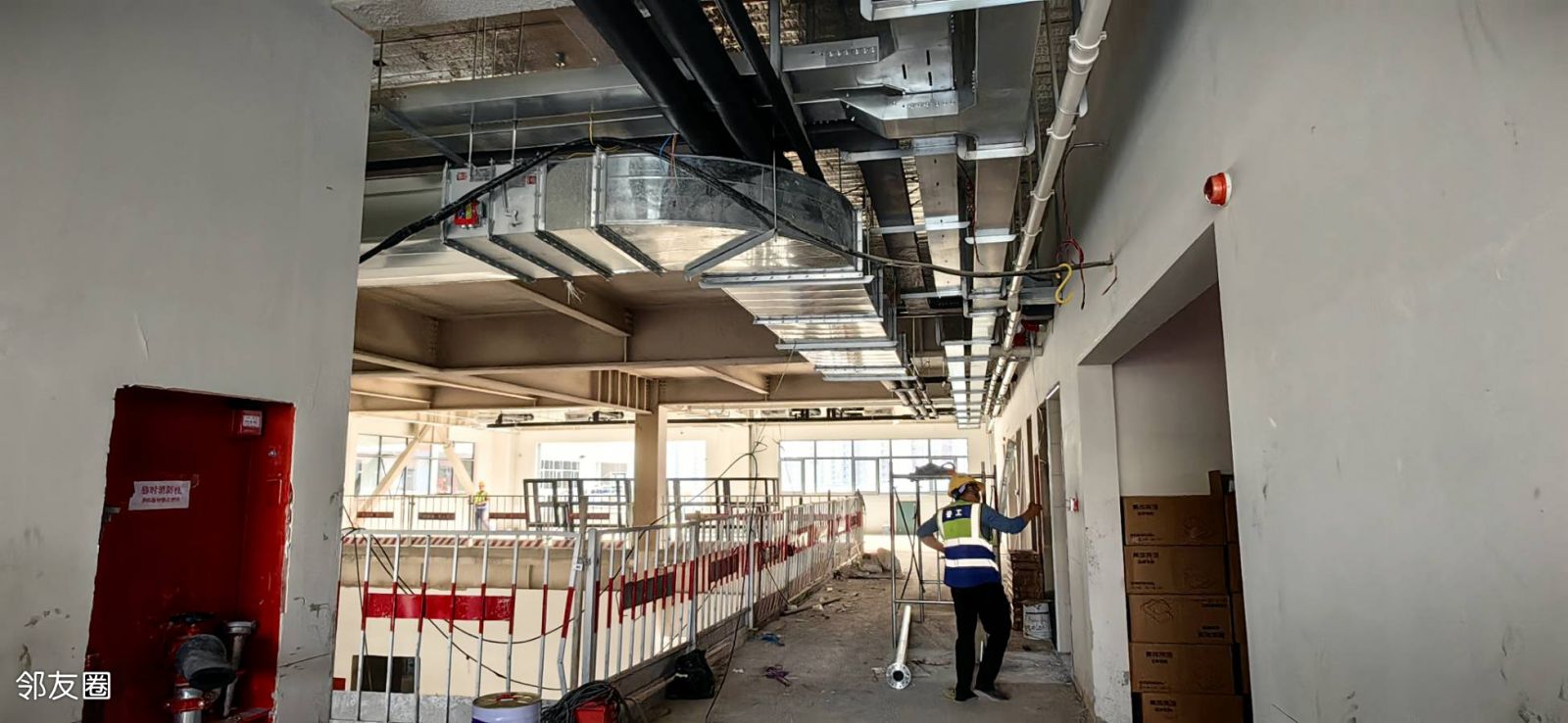 令人惊喜的是这次看到正在装修的教室内部,全都有中央空调!这个配置真是太给力了,以前的挂式空调吹的地方凉吹不到的地方热的情况将一去不复返,教室里将四季如春舒适到起飞。