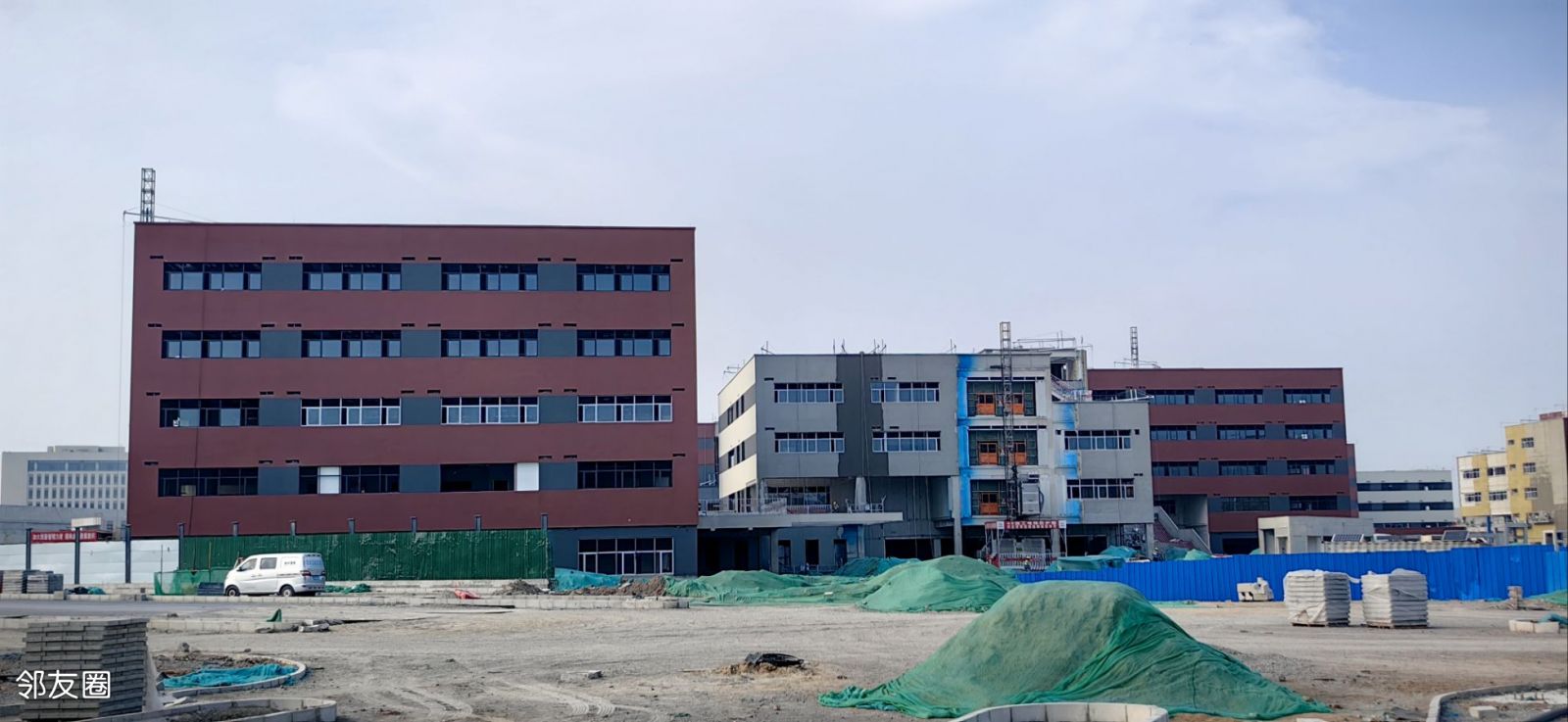 昨天下午来到建设中的北京中学东坝北校区工地现场,工程正在如火如荼的进行中,教学楼的外立面已经做好保温开始刷涂料——还是北中的代表色棕红色。