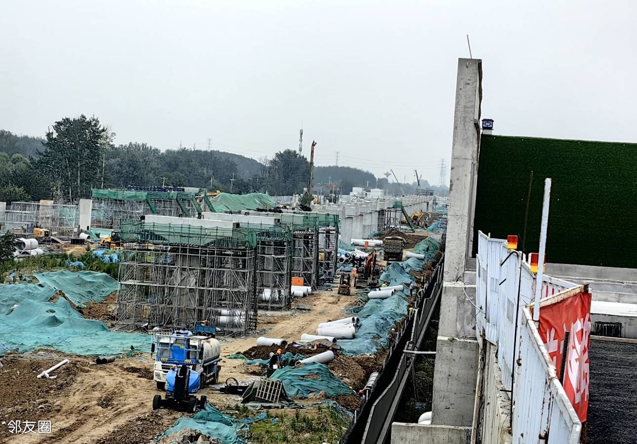 这里是北熙区地铁车辆段上盖北侧,一个接一个的桥墩,就是未来亮马河北路,在这一段的高架辅路桥基。