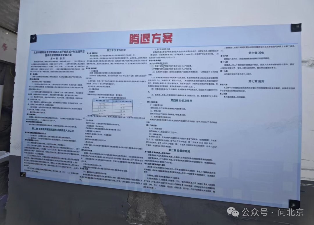 赵先生提供给“问北京”记者一份东坝乡单店区域平房区域城中村改造项目国有住宅房屋腾退安置方案,根据方案,目前正在对此前居住在平房区的居民进行腾退安置。记者来到该腾退项目的现场咨询办公室了解情况,工作人员表示,预计三年后平房区居民能住进新房。
