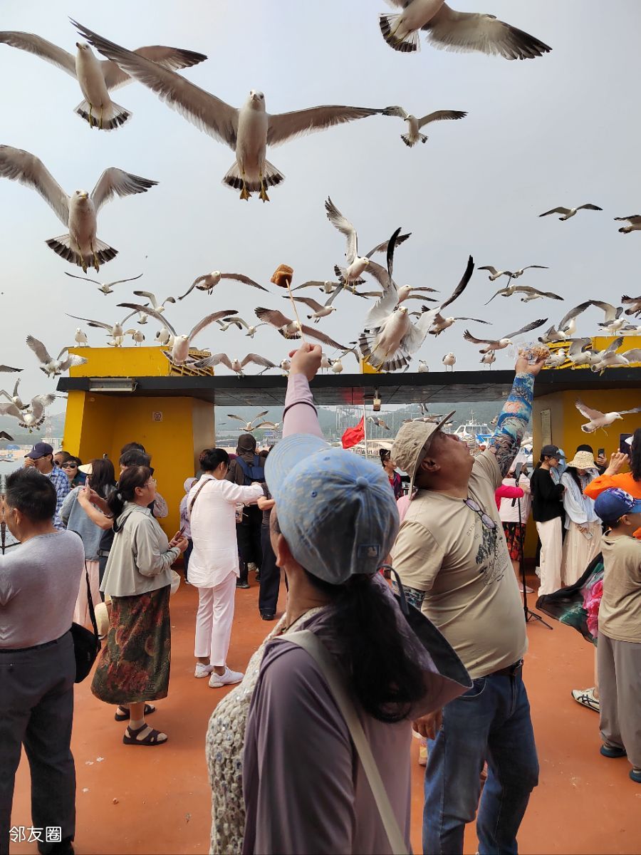 因为以前来威海时候,带着孩子,孩子比较小就没去荣城,这趟把遗憾弥补上,去了海驴岛坐船喂了海鸥,前一天吃自制时候先生说:吃烤串的钎子别扔,一会去买点面包串上,明天可以喂海鸥,海驴岛坐船喂了海鸥也就一个小时,剩下的时间看了下,就来野生动物园转了多半天。