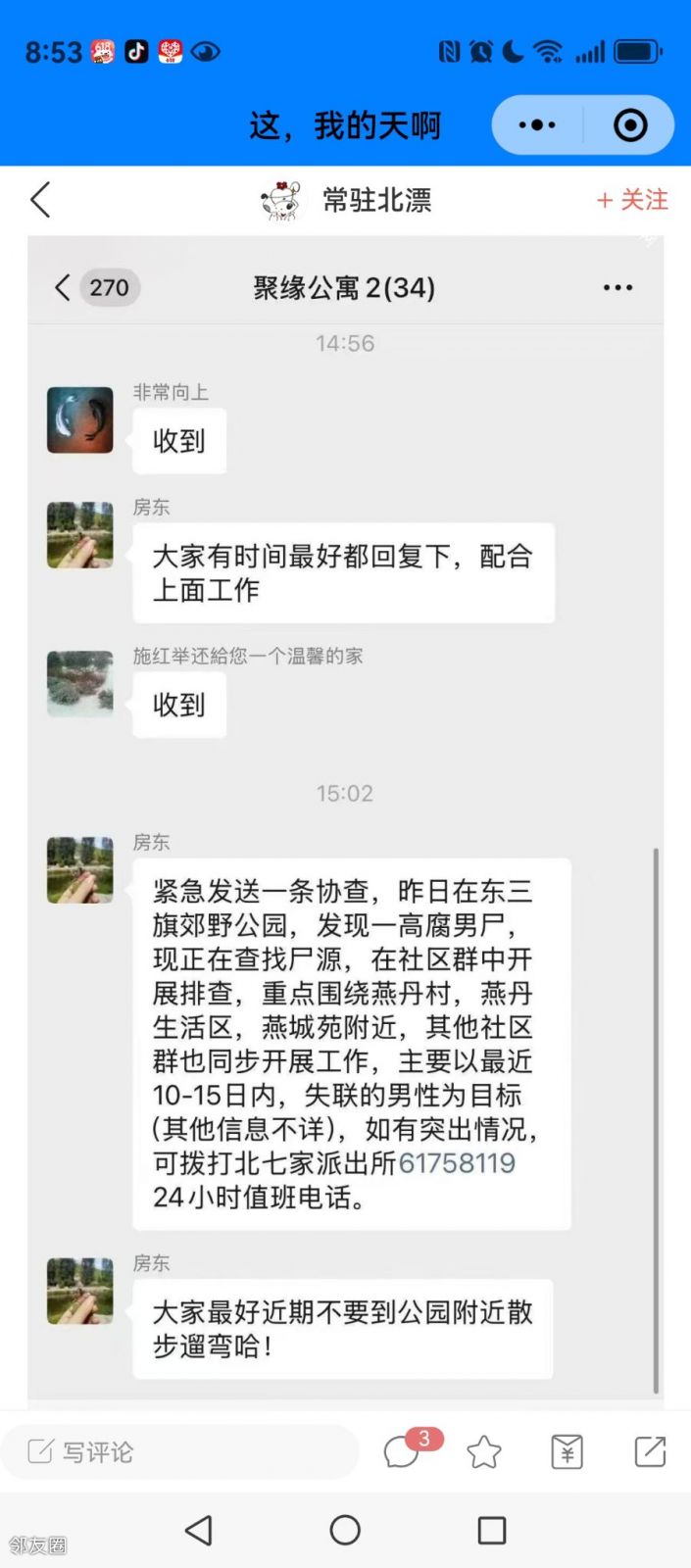 震惊!天通苑东三旗郊野公园发现高腐男尸!