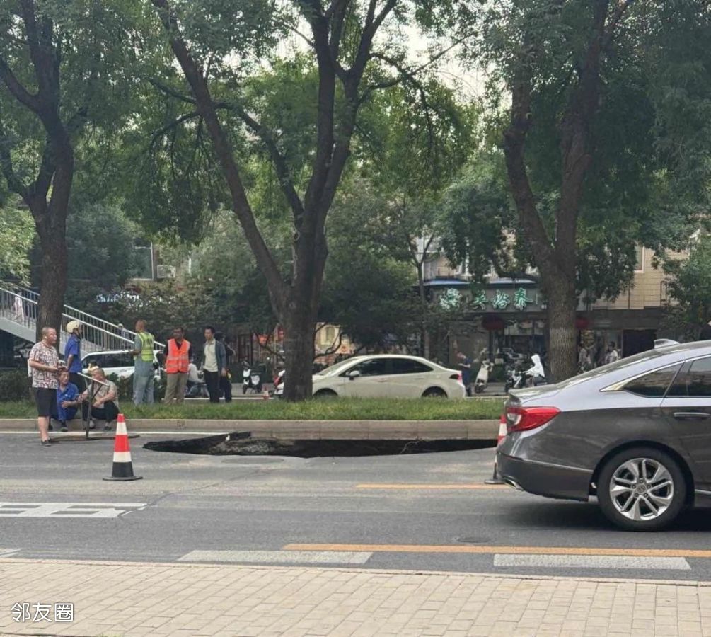 6月26日早晨6点多,在学校清路静淑苑公交站附近,南向北的里侧车道,突然发生路面塌陷,几辆路过的车险些陷落。