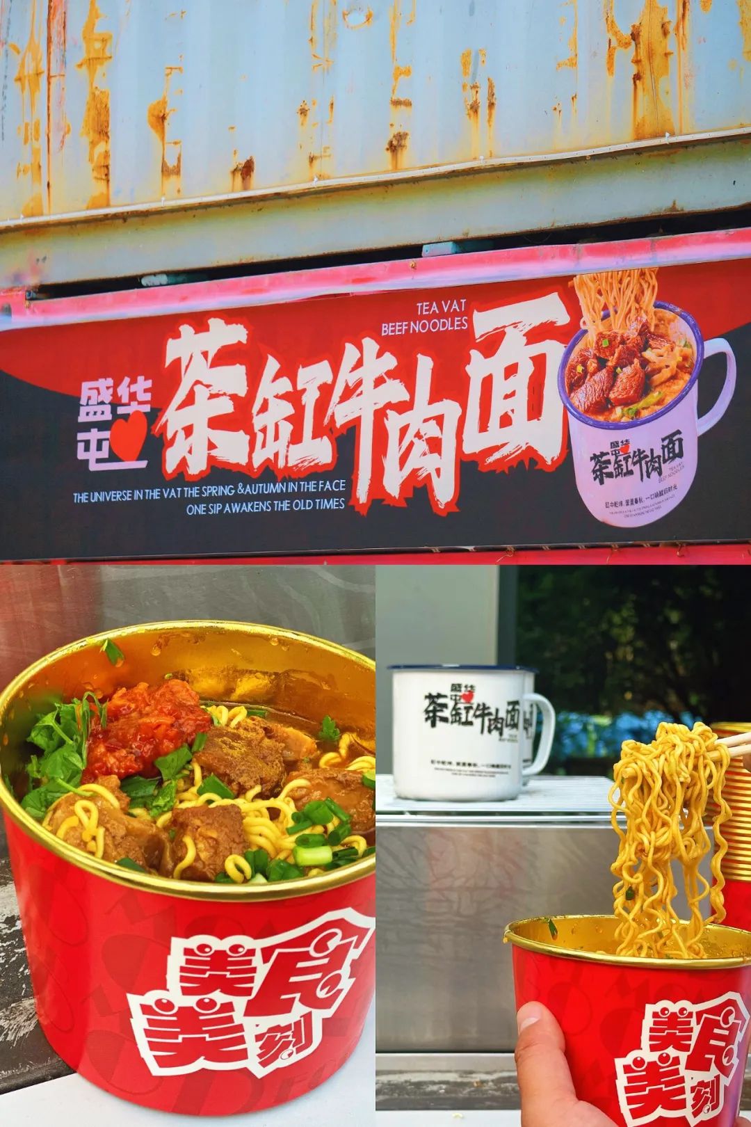 🍜茶缸牛肉面: 复古搪瓷缸煮面!牛肉大块软烂,汤头浓郁,仪式感满分!