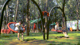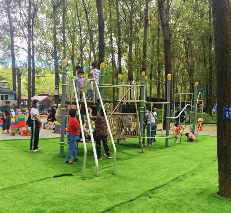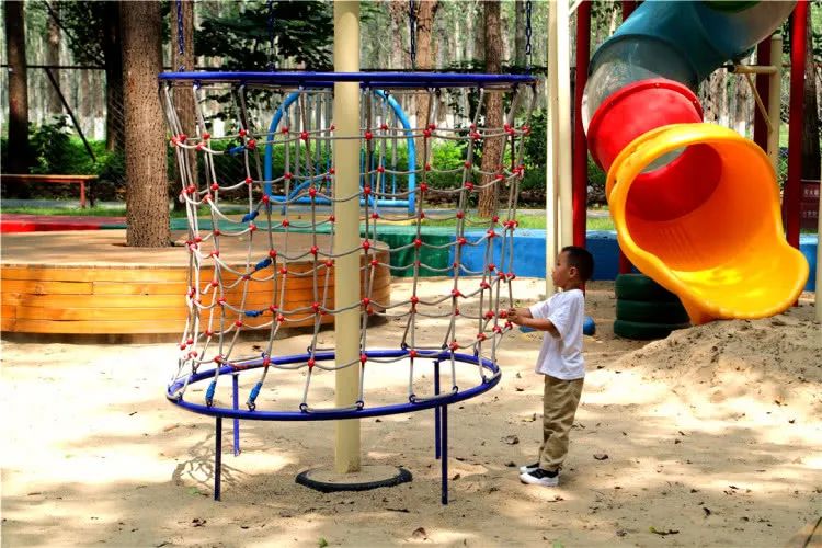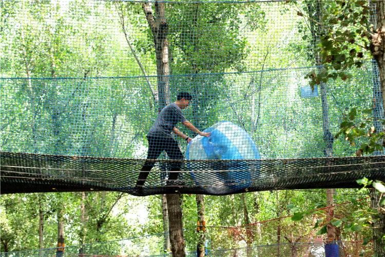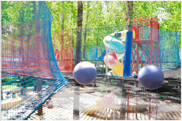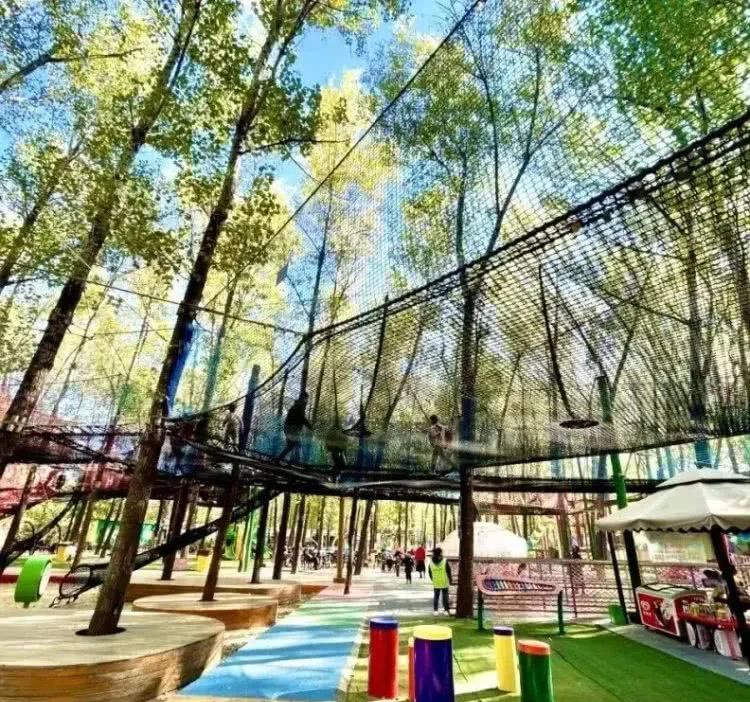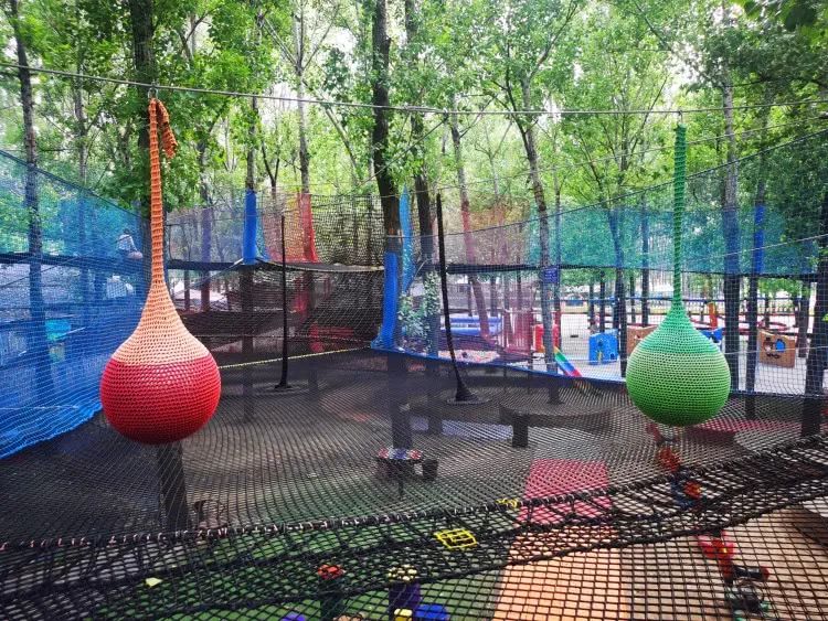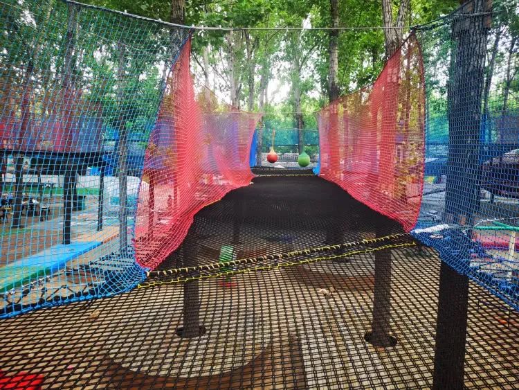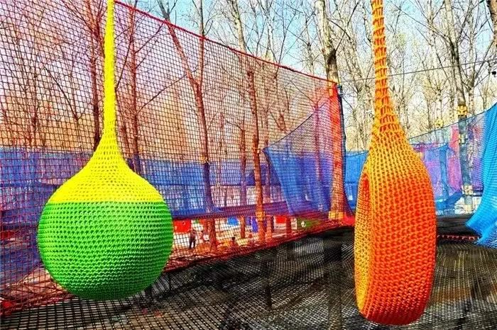 网绳高低错落,从 1.5 米的幼儿安全区到 5 米的成人挑战区,全家都能变身 “空中飞人”!双层防护设计安全感拉满,穿梭在绿树与网绳交织的森林间,感受风从耳边呼啸而过的刺激!