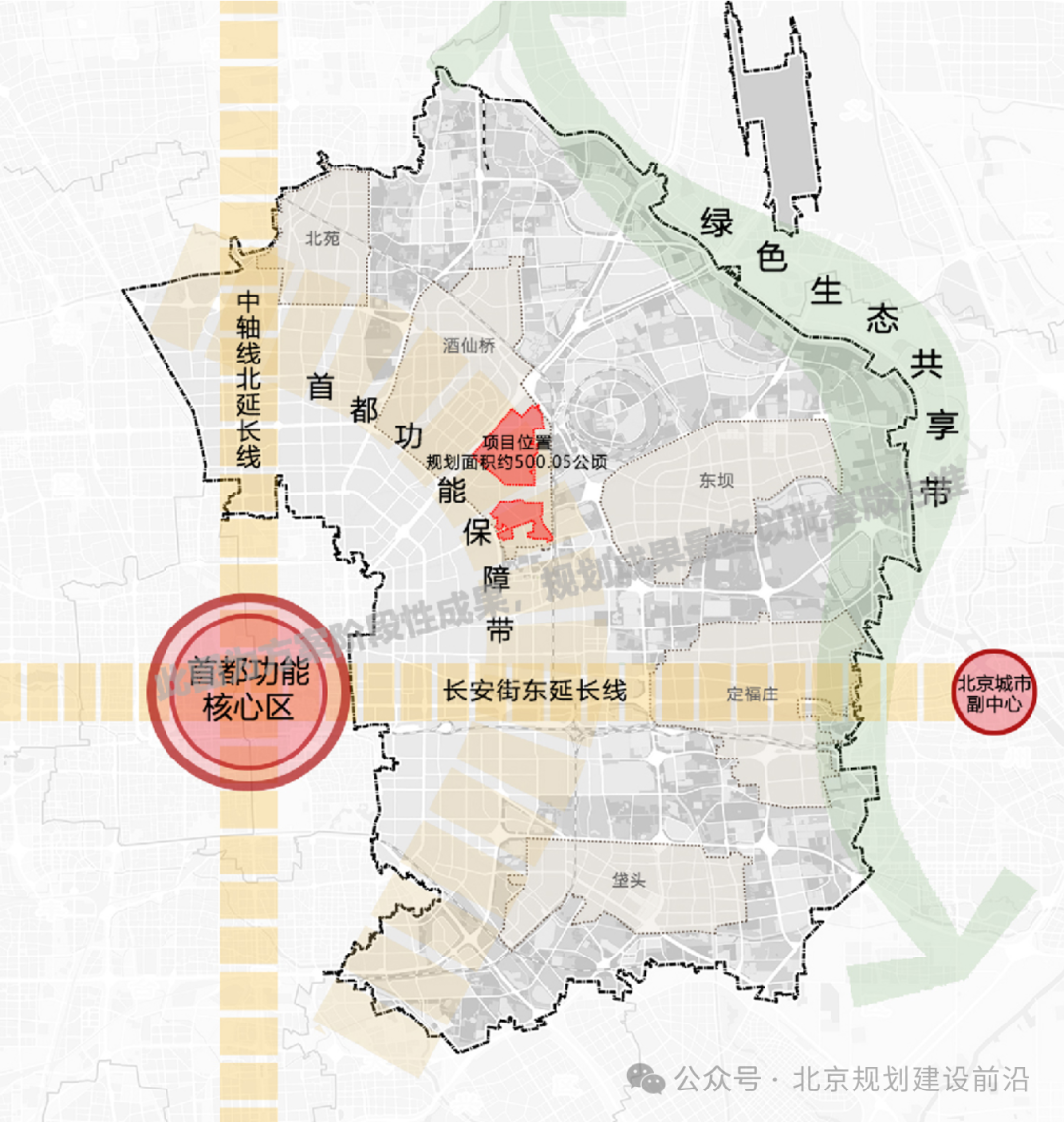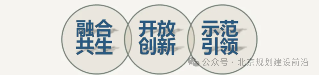 践行新发展理念,支撑服务北京国际交往、文化引领、科技创新功能,到2035年,以“共创”实现科技人文产业协同与创新发展,以“共享”助推民生改善与绿色生活,以“共融”促进公共空间与文化消费融合的新场景,着力打造管控合理、功能完善、活力宜居、科创引领、彰显历史魅力与现代人文的多元共生承载地。