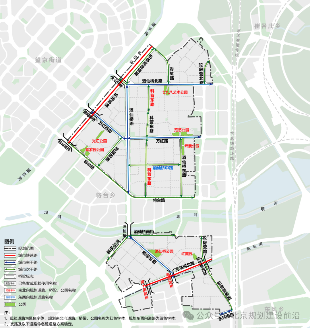 结合园区工业遗存保护,优化城市道路微循环系统,加强规划小街区、密路网的道路网格局。坚持公交优先、绿色出行,提升区域交通承载能力。推进规划道路重要节点实施与治理,解决拥堵问题,提升出行效率,构建级配合理、功能完善的道路网系统。本次规划践行新发展理念,为服务首都“四个中心”建设、提升“四个服务”水平,围绕地区“融合共生、开放创新、示范引领”的功能定位,以全面改善区域民生与促进产业高质量发展为根本目标,打造管控合理、功能完善、活力宜居、创新引领、彰显历史魅力与科创融合的多元共生承载地。来源:北京市规自委