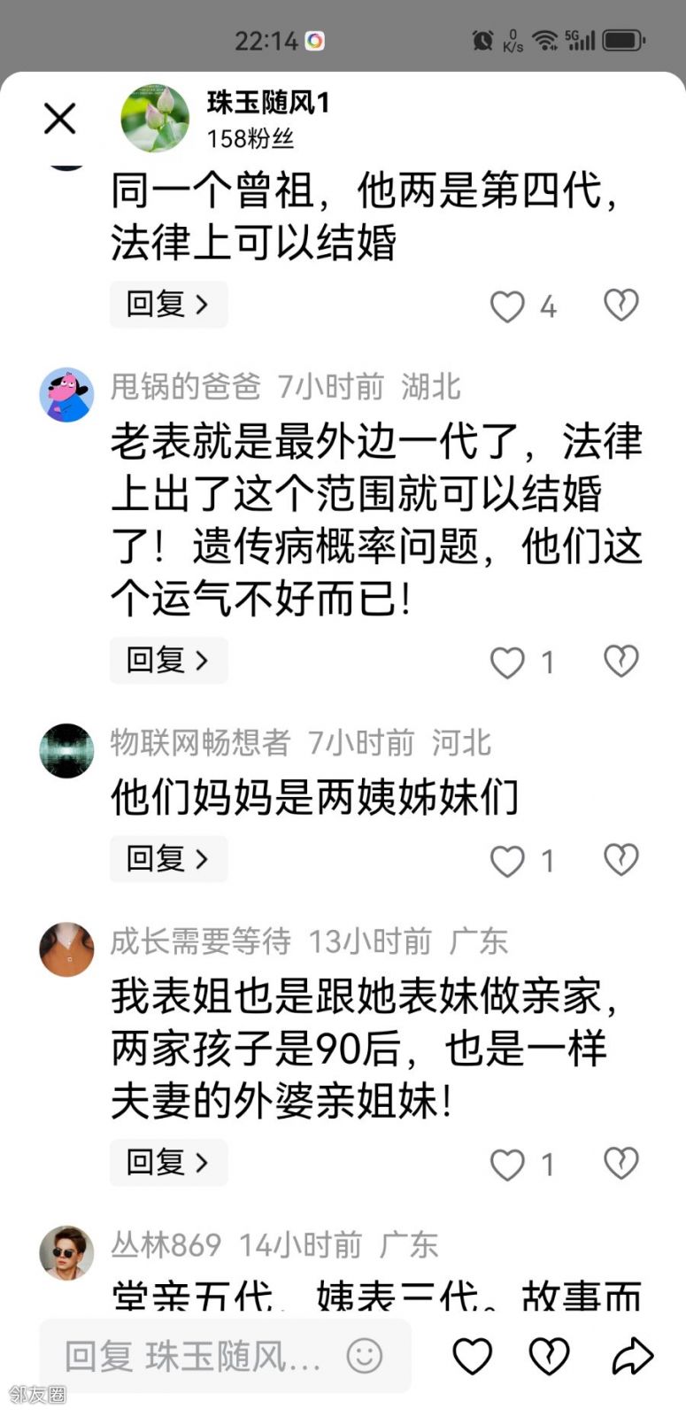 我们小时候这种事多的是,评剧《花为媒》说的就是表姐弟结婚。我记得应该是我上高中的时候婚姻法才规定的三代以内不准结婚,我大学同学毕业后还跟他表哥结婚了呢。中国算好的,老祖宗们规定同姓不结婚,听历史欧洲西亚那边的王族为了政治,国王都娶了自己的亲姐姐,还生了孩子