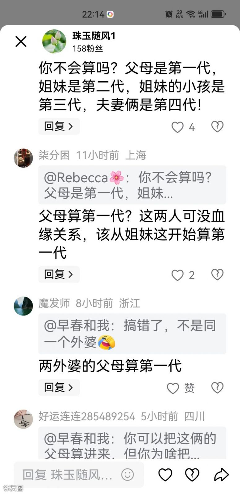 让我捋捋…就好比我儿子娶了我姨的外孙女,也就是我表妹的女儿。