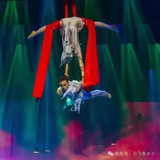 或是力与柔在空中交错,或是彩绸缠绕飞舞,时而腾空飞起,时而轻柔飘落人间,各种杂技表演让观众大饱眼福!