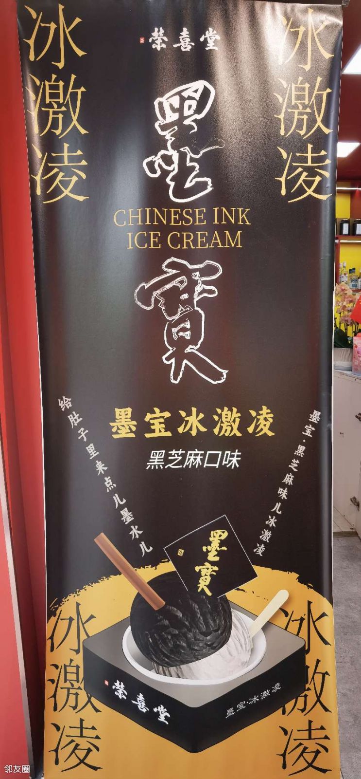 路过一个带“斋”字的店,门前有“墨宝”冰淇淋,哈哈有点儿意思,你吃过墨宝冰淇淋吗?