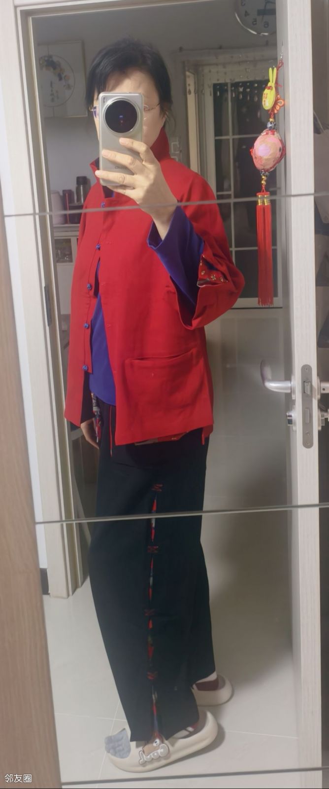刚翻出尘封20年的一套唐装,试了试还能穿,准备把它穿了。