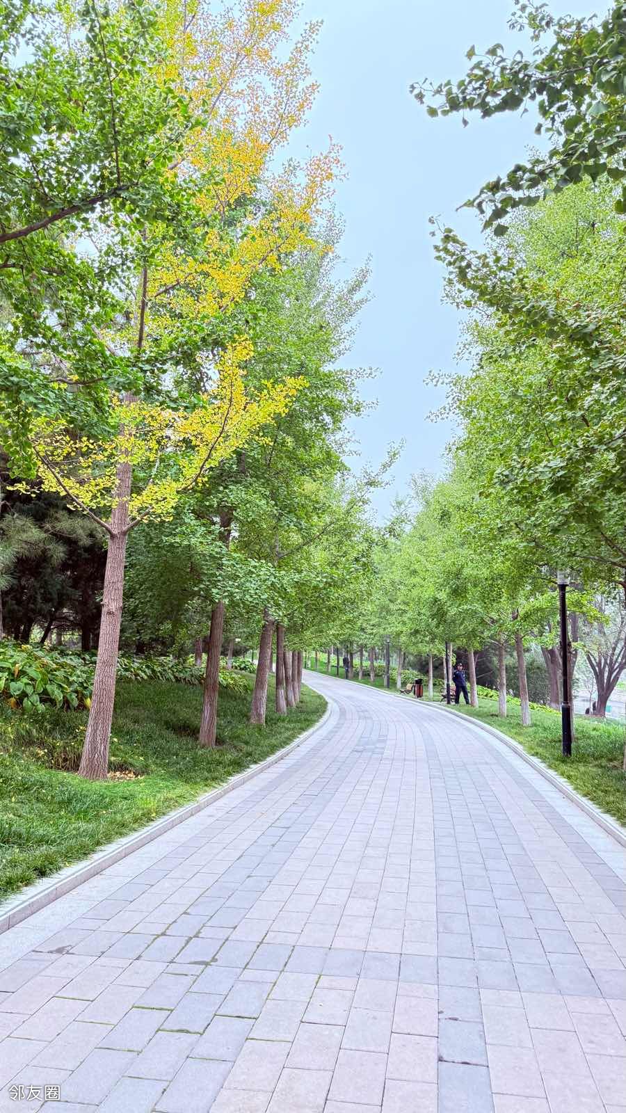 望和公园的银杏大道的叶子尚未变黄,但是几步之外的停车场,已是金黄灿灿的景象。
