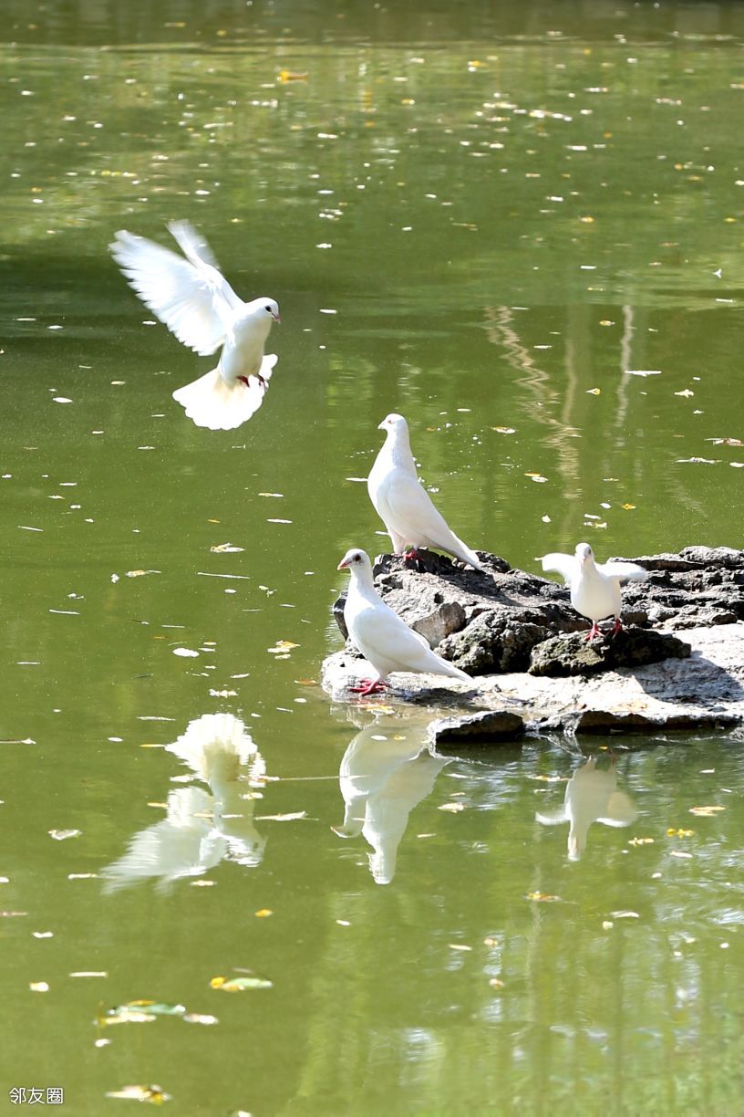 龙潭中湖公园有一群白鸽,每飞于天像一朵白云,每落于地像一个片祥瑞,每临于水像一群圣灵…